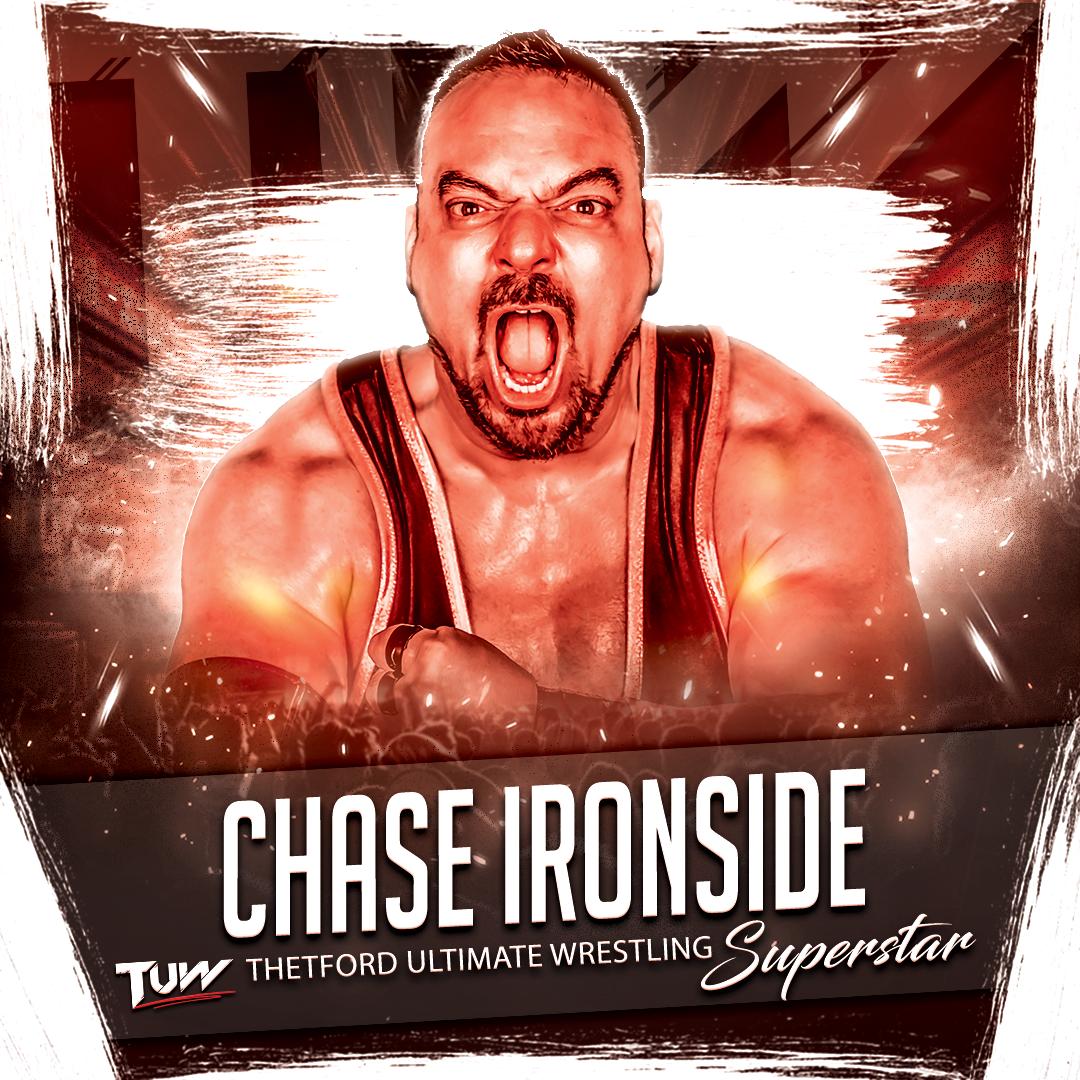 Chase Ironside est un lutteur imposant et dominant, actif depuis les années 90 et ayant affronté les plus grands du Québec. Pionnier ayant contribué à faire tomber les barrières de la lutte et entrer dans la pop culture québécoise, il a frôlé le titre TUW à plusieurs reprises. À la TUW, il reste l’un des colosses du ring : lutter contre Chase, c’est comme frapper un mur.