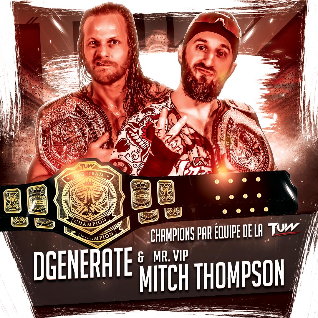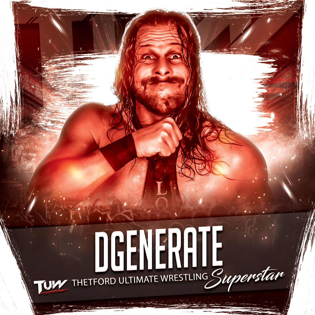 DGenerate, champion par équipe TUW aux côtés de Mr VIP Mitch Thompson, est l’un des lutteurs les plus dégénérés, impulsifs et flamboyants de la TUW. Très émotif, il reste pourtant redoutable dans le ring. Ancien champion TUW et membre de la Classe Supérieure avec Marko Estrada, Mitch Thompson et Dreya Mitchell, il fait toujours sentir sa présence sur chaque match.