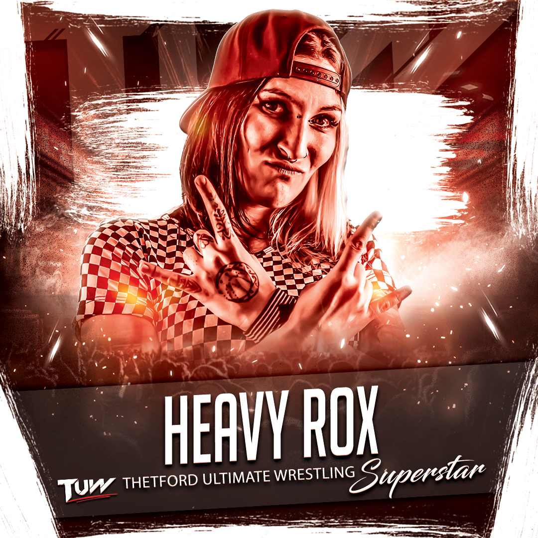 Heavy Rox est l’une des meilleures lutteuses du Québec et une figure incontournable de la TUW. Son style hybride mêle rapidité, technique et puissance, avec des frappes qui font mal. Dans le ring, son côté rebelle ressort pleinement, donnant à son style une allure anarchique et imprévisible.