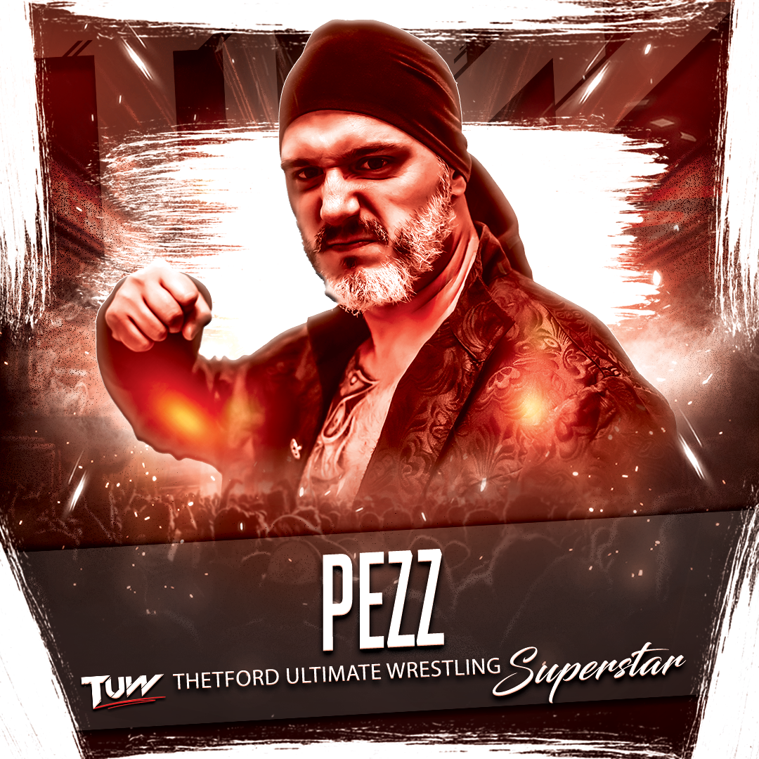 Pezz, anciennement Capitaine Pezz, est l’un des rares à être présent à la TUW depuis ses débuts en 2001. Ancien champion TUW, il a pris un tournant sombre en 2025 : après son attaque sur son ancien partenaire Jake Madison en tant que The High Seas, Pezz n’est plus le même. Très imprévisible, son style puissant et dominant, unique à la TUW, fait de lui un adversaire redoutable.