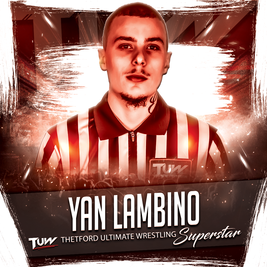 Yan Lambino, arbitre de la TUW depuis le retour de la promotion en 2023, est l’un des arbitres les plus respectés du Québec. Imposant et rigoureux, il fait la loi dans le ring et officie souvent lors des combats impliquant nos invités internationaux.